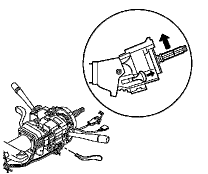 Remove the tilt spring (1) from the steering column support assembly (2) and from the steering column tilt head assembly (3) by using the following procedure: