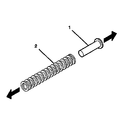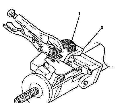 Install the tilt spring (1) onto the steering column support assembly (2) and onto the steering column tilt head assembly by using the following procedure: