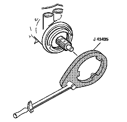 2. Remove the coupling shield retainer and the lock nut from the steering gear housing using J 43435 and a torque wrench.