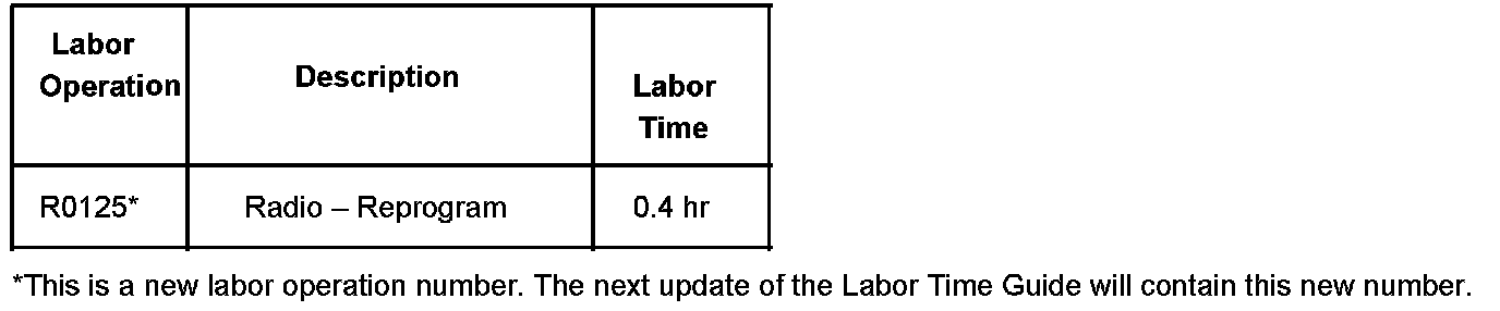 Technicians are to reprogram the radio with an updated software calibration. This new service calibration was released with TIS satellite data update version 4.5 available April 19, 2004. As always, make sure your TECH 2(R) is updated with the latest software version.