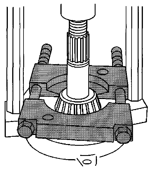 10. Remove the inner pinion bearing using the J22912-01 and a hydraulic press.