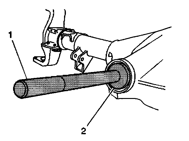 1. For the 9.75 inch axle, install the inner pinion bearing cup using the J45704 (2) and the J8092 (1).