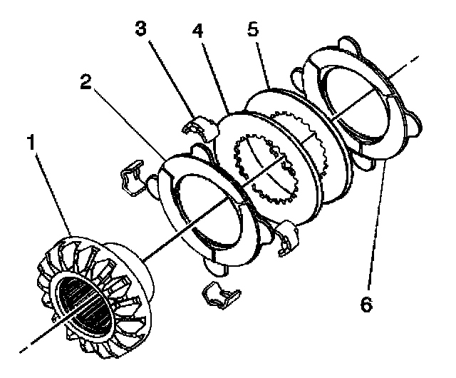 and the splined discs (2, 4-6) from the locking differential side gear (1).