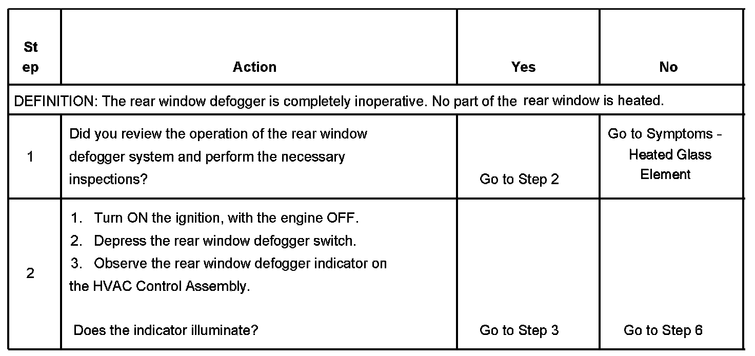 DEFOGGER INOPERATIVE - REAR WINDOWTEST DESCRIPTION