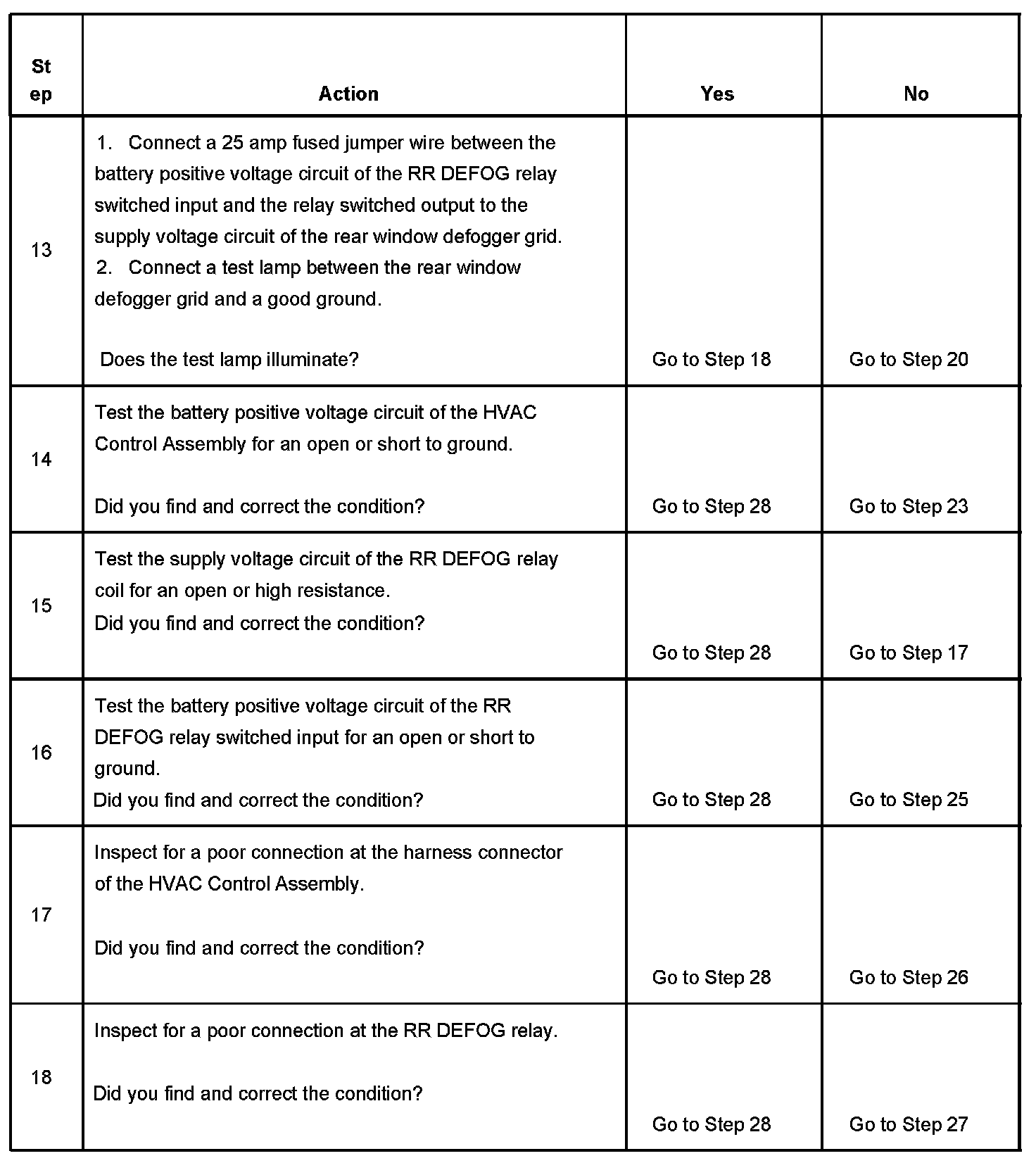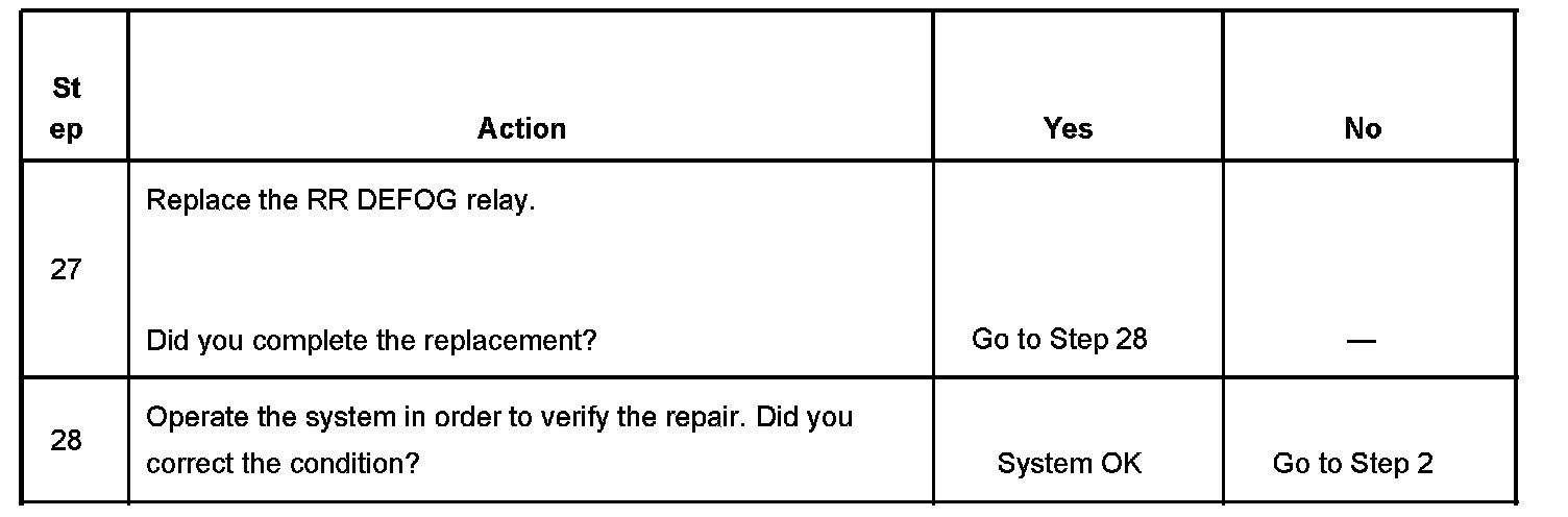 9. Listen for an audible click when the RR DEFOG relay operates. Command both the ON and OFF states of the RR DEFOG relay. Repeat the commands as necessary.