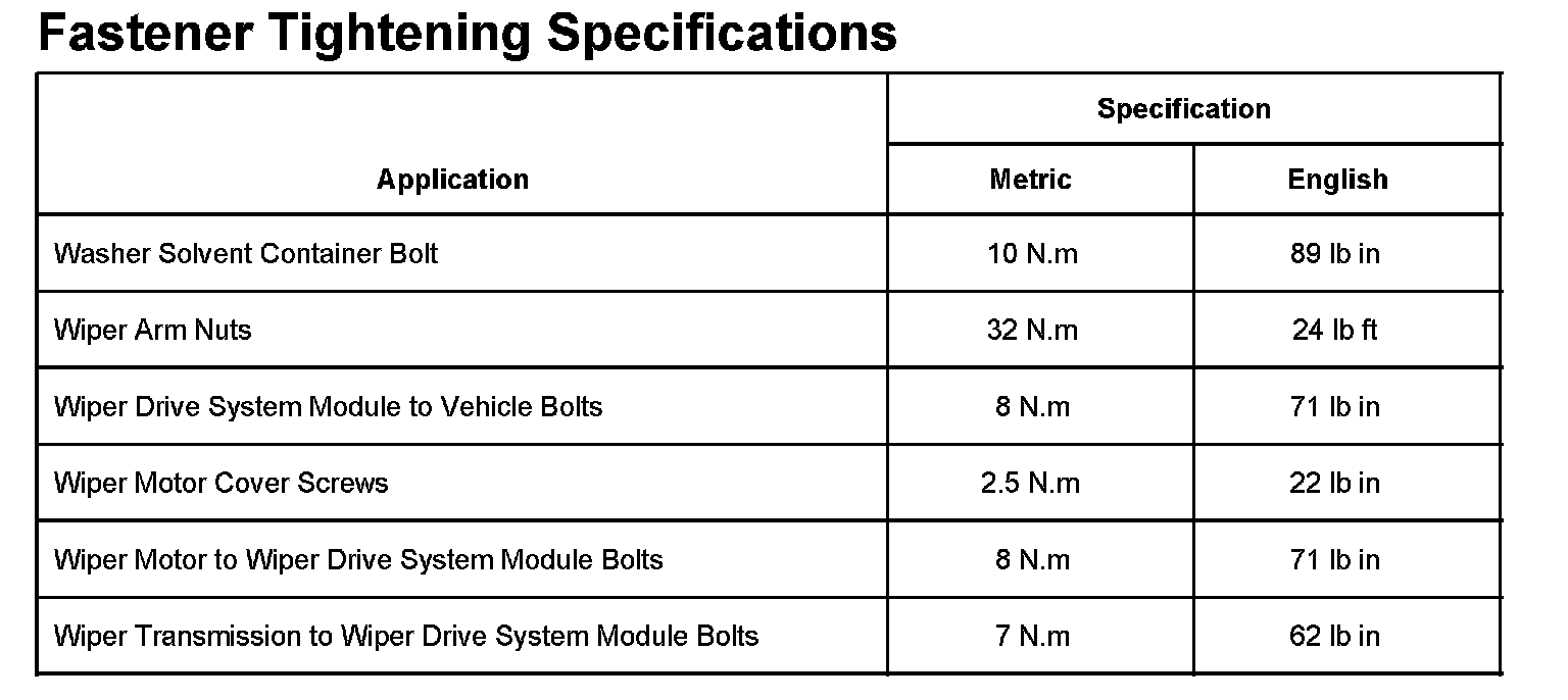 Wiper and Washer Systems: Specifications