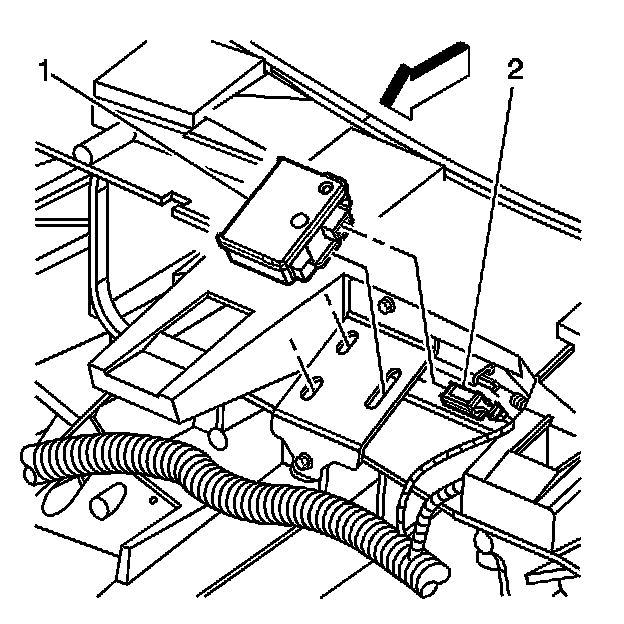 3. Disengage the remote control door lock receiver (1) from the door lock receiver bracket.