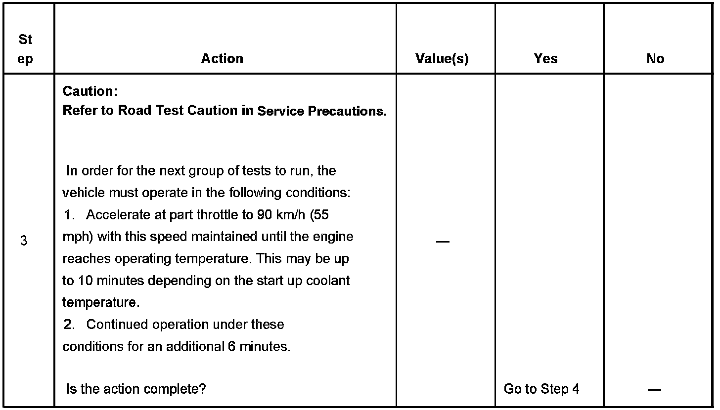 3. This step runs the EVAP, AIR and the Oxygen Sensor Tests. The EVAP Test begins once the engine coolant reaches a calibrated temperature. The AIR Test, if equipped, begins shortly after Closed Loop and the indicated speed is achieved. The Oxygen Sensor Tests begin once the engine is at operating temperature, in Closed Loop Fuel Control, and a calibrated amount of time has elapsed.