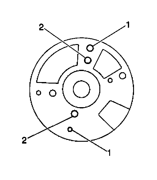 11. Align the rotor segment as shown for a V6 engine (1) or V8 engine (2).