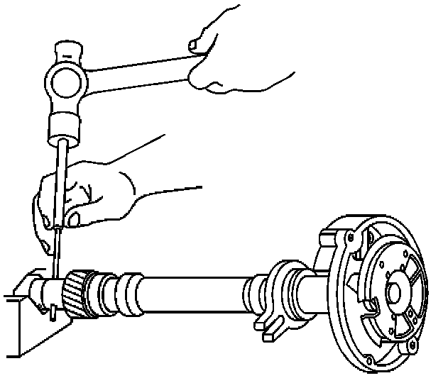 11. Support the distributor drive gear in a V-block or similar fixture.