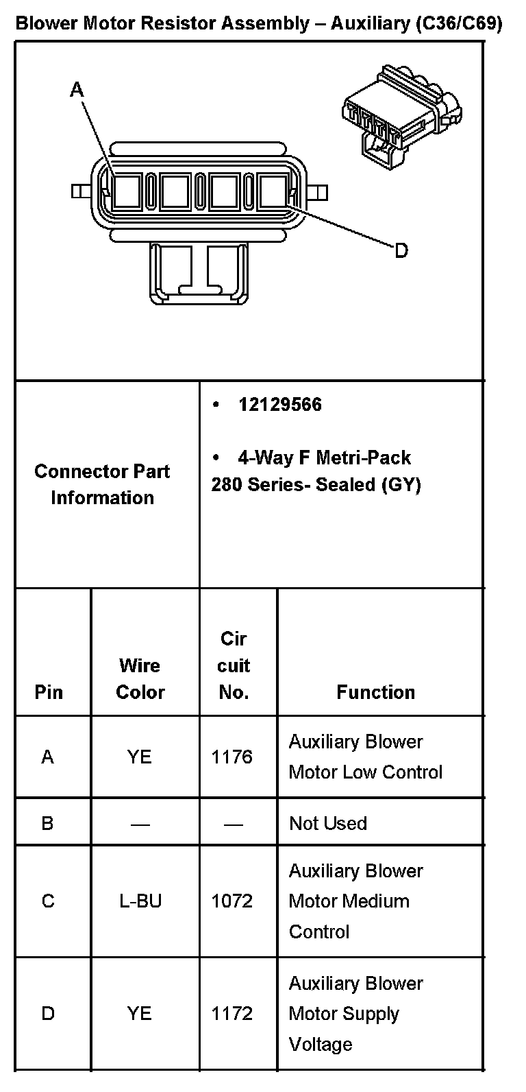 Blower Motor Resistor Assembly - Auxiliary (With RPO Code C36/C69):