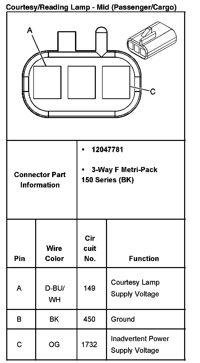 Courtesy/Reading Lamp - Rear (Passenger/Cargo):