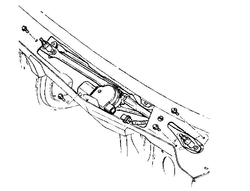 1. Install the wiper motor onto the wiper drive system module with the 2 bolts.