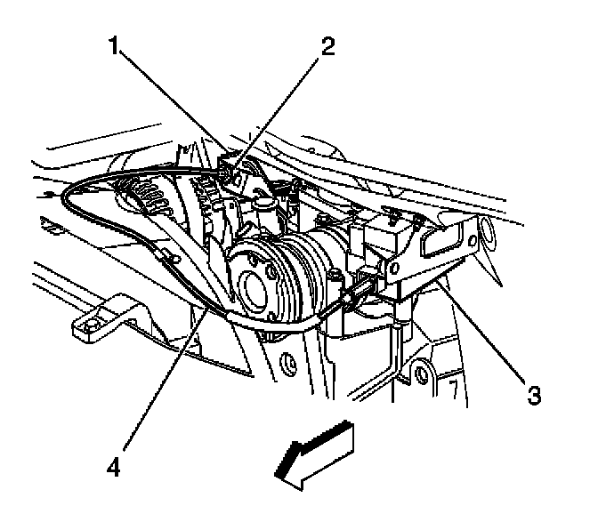 1. Route the cruise control cable (4) from the cruise control module (3) to the throttle body.