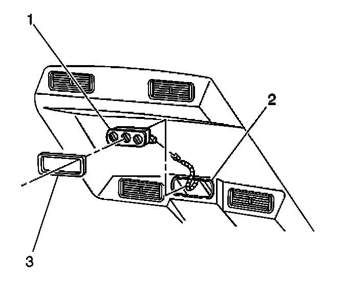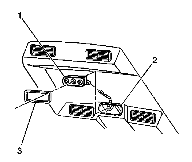 1. Remove the HVAC control assembly bezel (3) from the headliner (2).