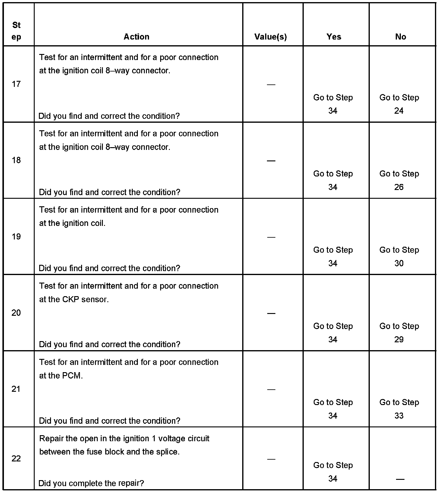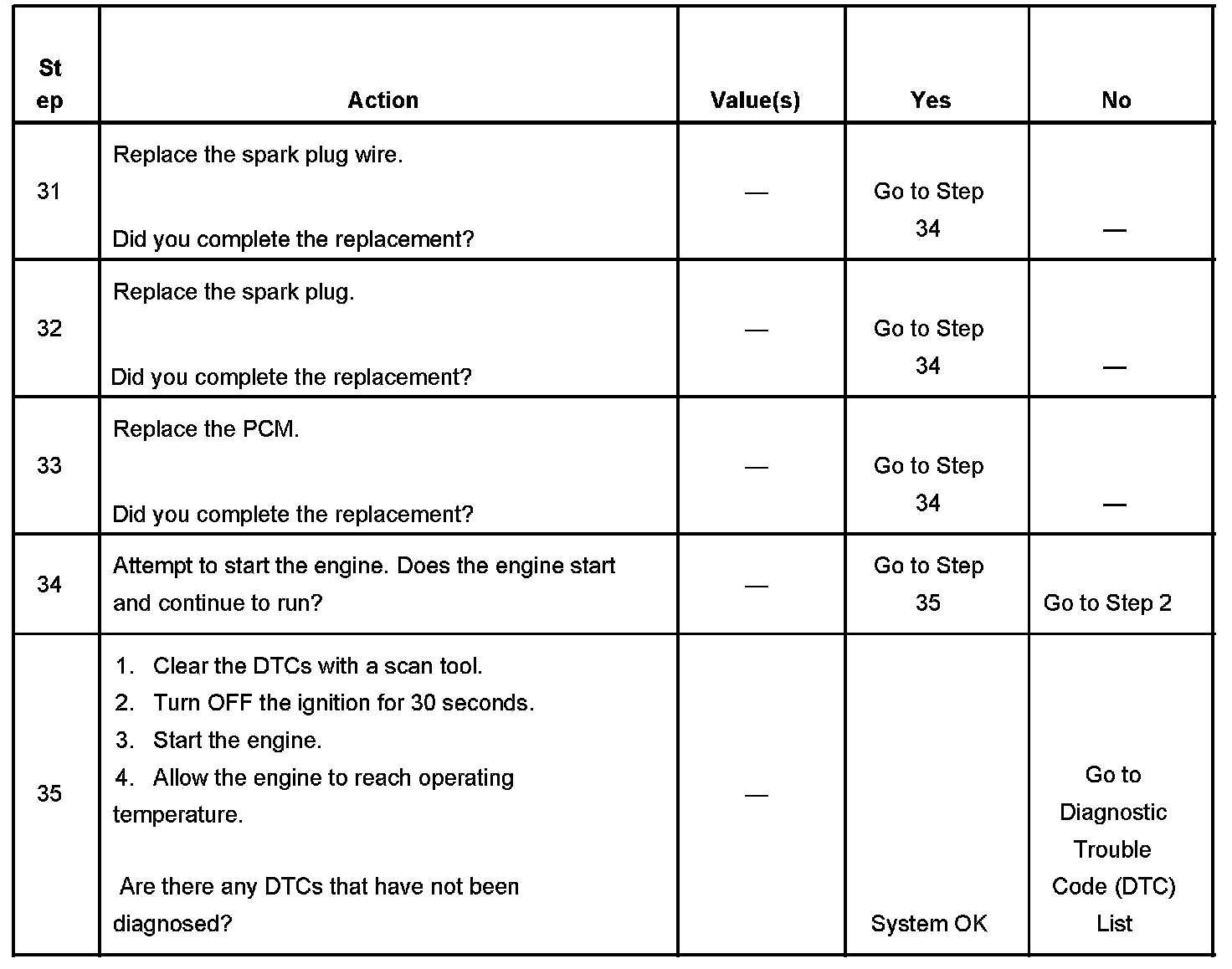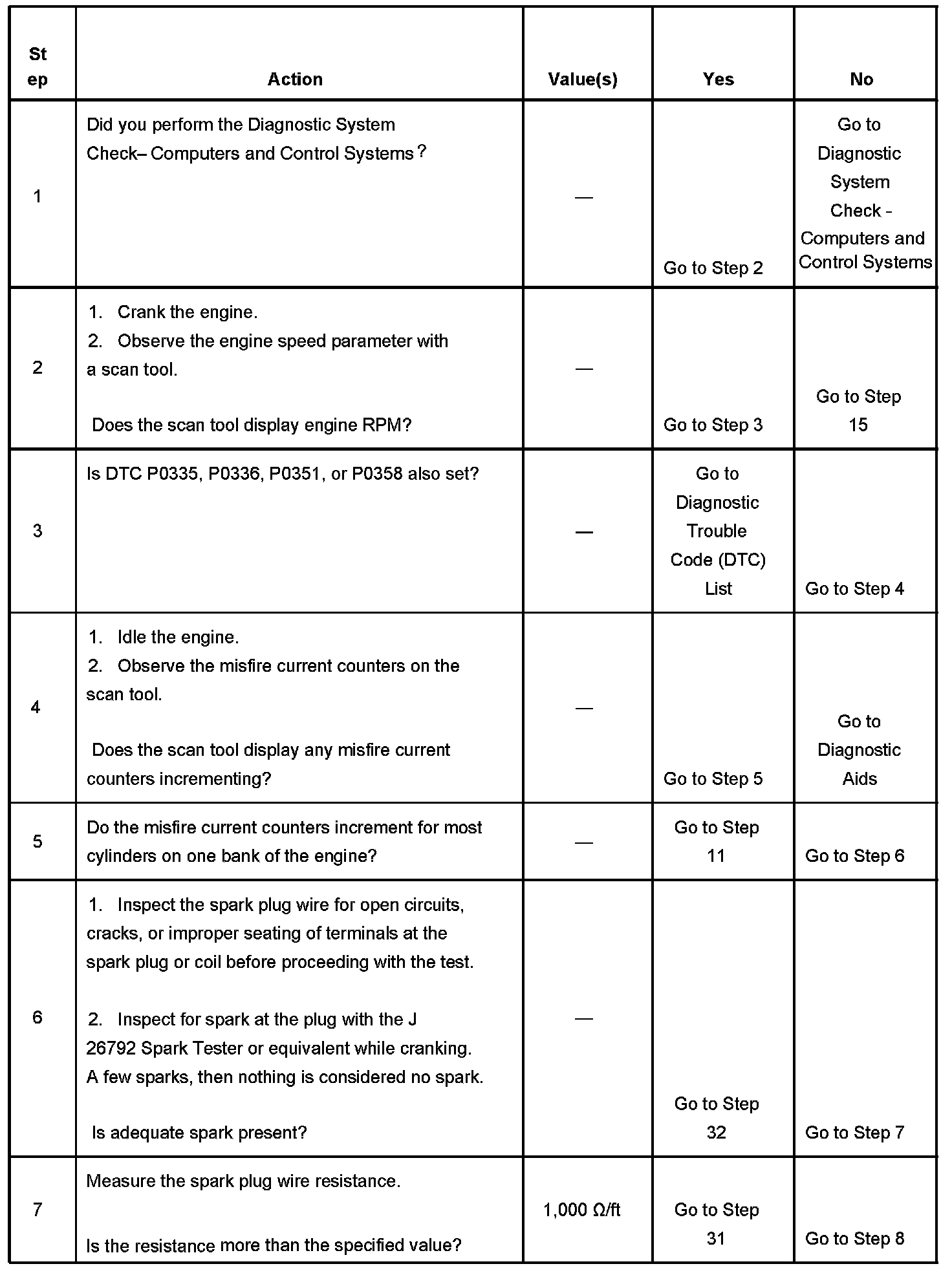 The number below refers to the step number on the diagnostic table.