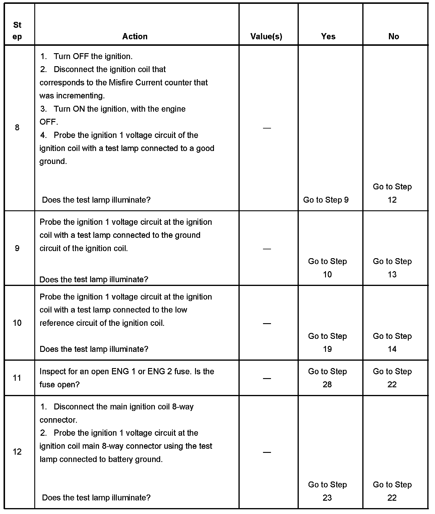 4. Monitoring the misfire current counters determines if a fault is present.