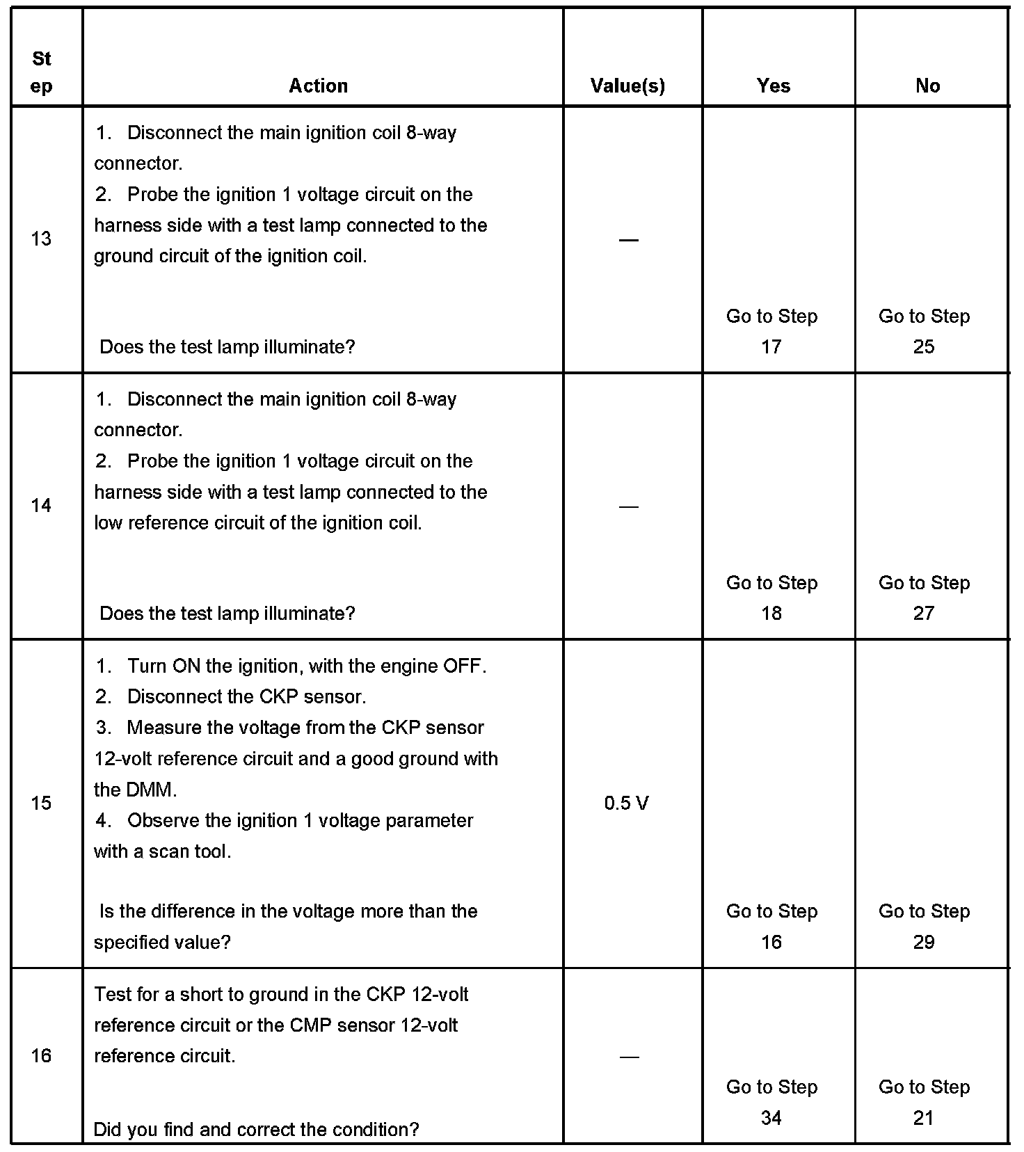 The PCM triggers an ignition coil by grounding the appropriate IC control using information from the crankshaft position (CKP) and camshaft position (CMP) sensors.