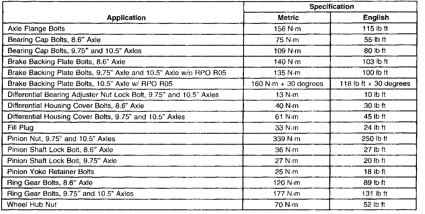 Fastener Tightening Specifications: