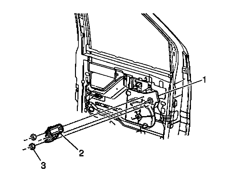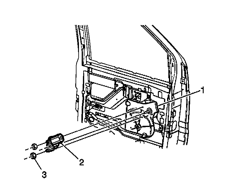 2. Install the nuts (3) in order to retain the power window motor (2) to the front door module (1).