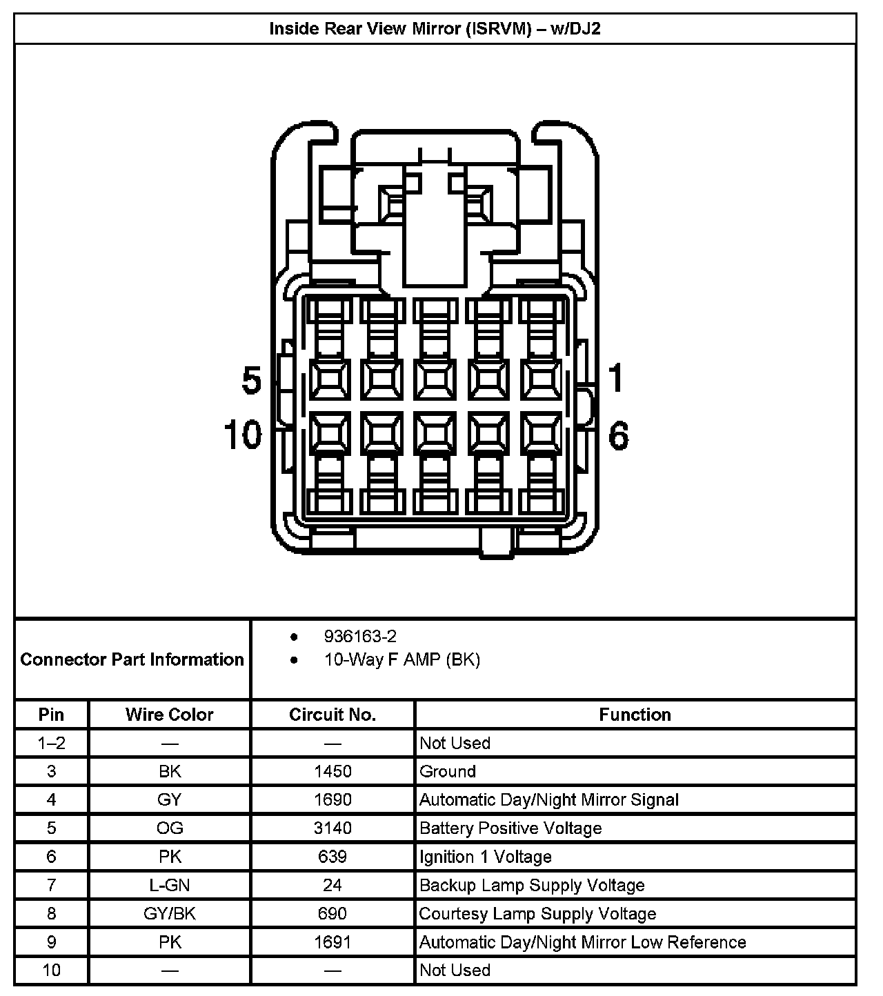 Inside Rear View Mirror (ISRVM) - Without RPO Code DJ2: