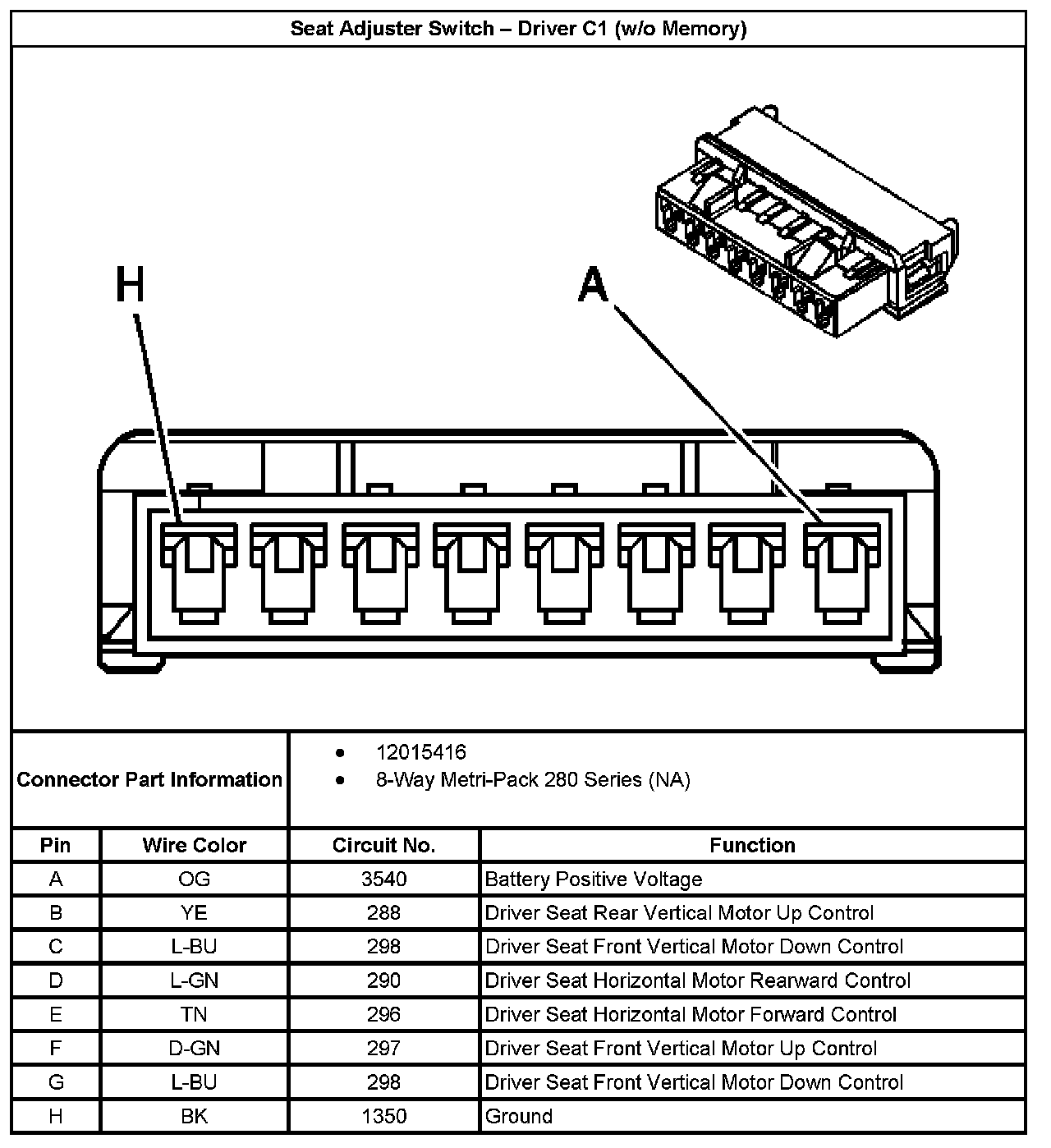 Seat Adjuster Switch - Driver C1 (w/o Memory):