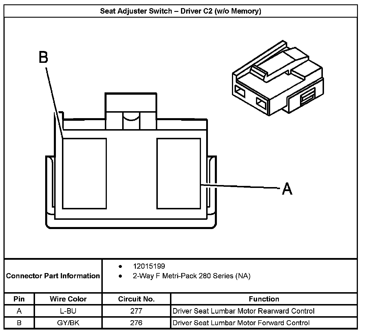 Seat Adjuster Switch - Driver C2 (w/o Memory):