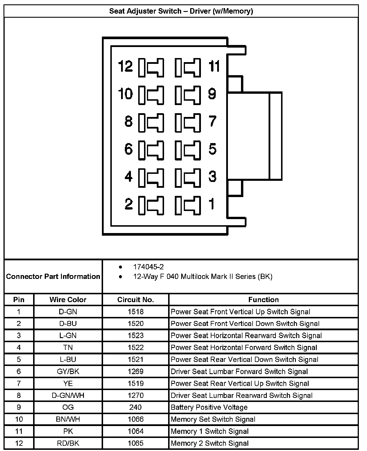 Seat Adjuster Switch - Driver (w/Memory):