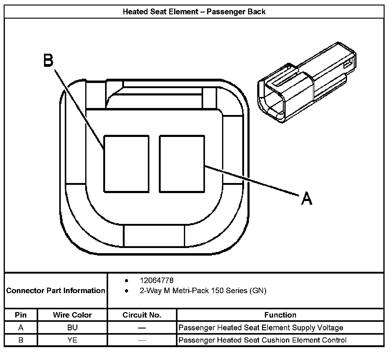 Heated Seat Element - Passenger Back: