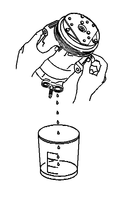 IMPORTANT: Drain and measure as much of the refrigerant oil as possible from the removed compressor.
