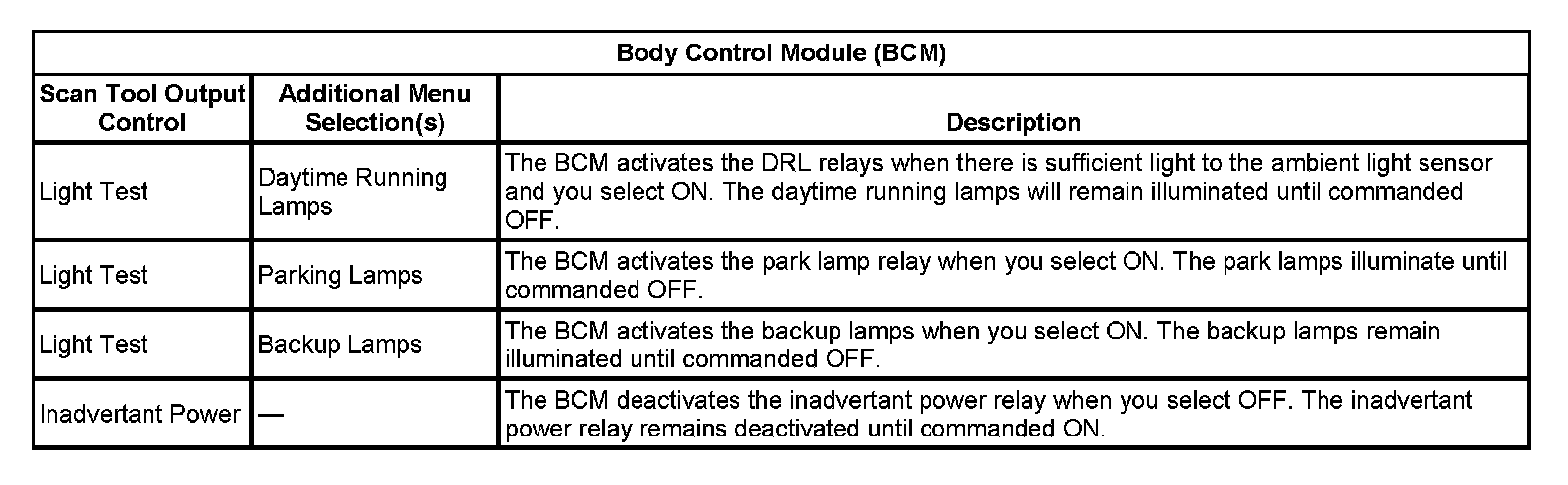 Scan Tool Output Controls - Body Control Module (BCM):