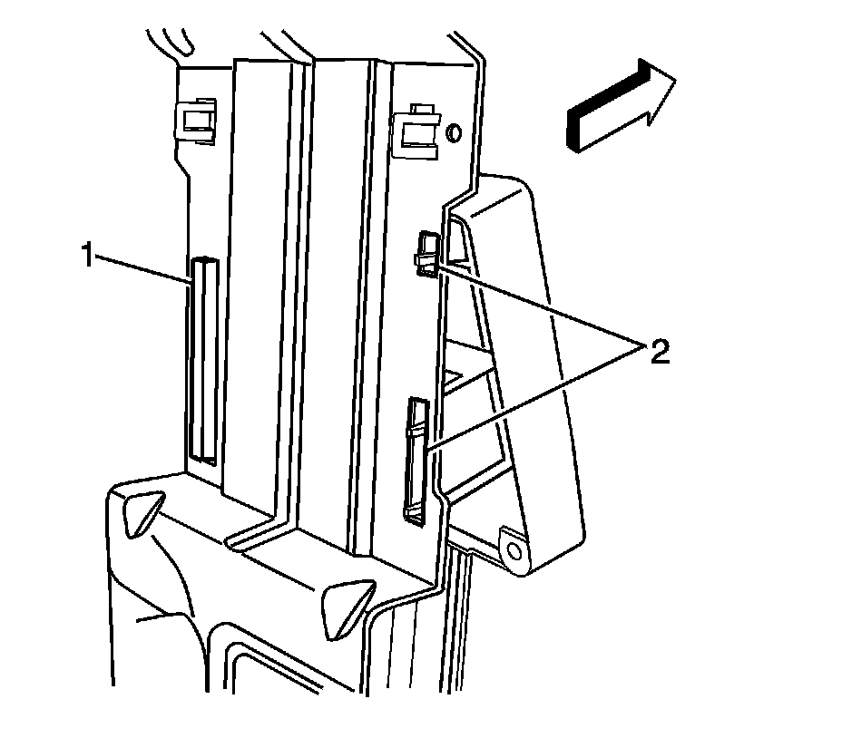 1. If replacing the BCM, install the mounting bracket on the BCM. Ensure the retaining tabs (1) are fully seated.