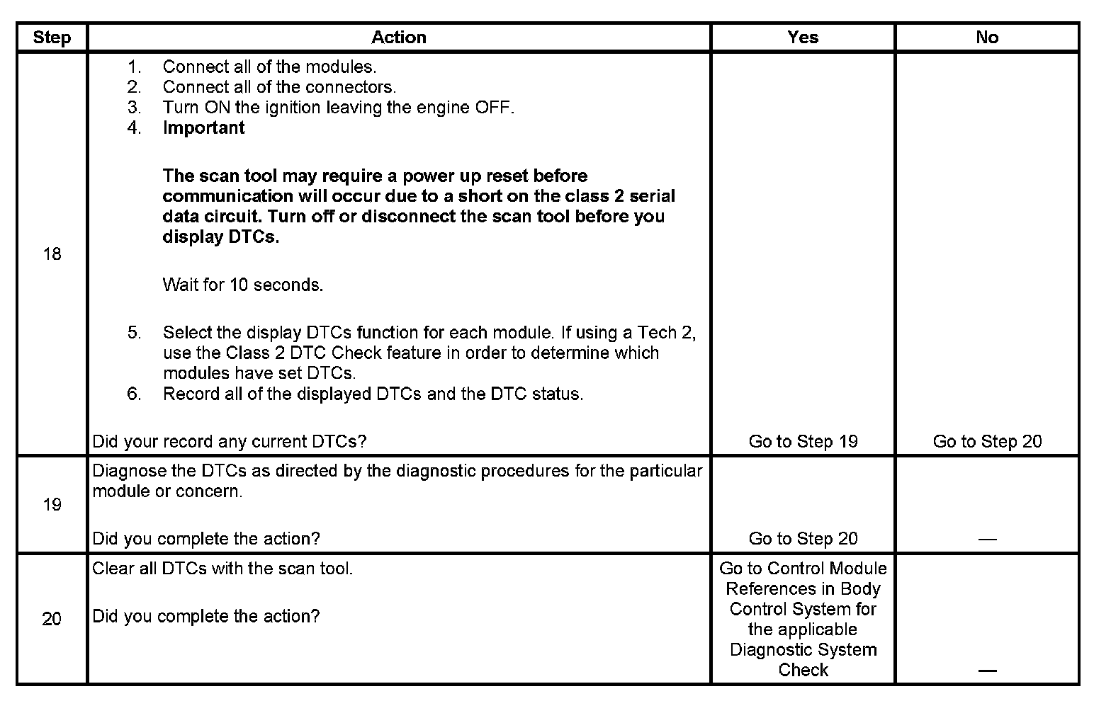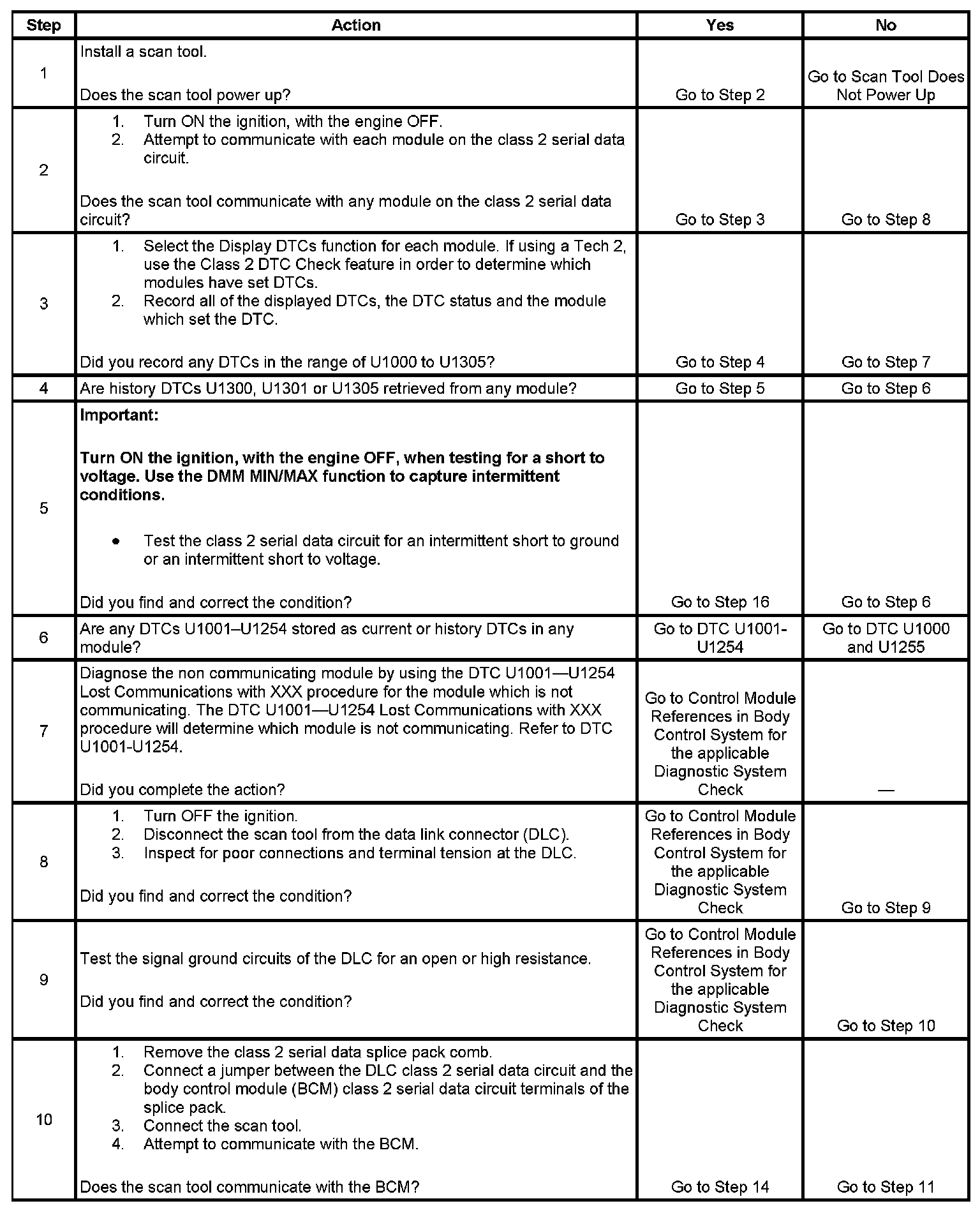 - When the class 2 serial data circuit is shorted to ground or voltage, the following DTCs may set: