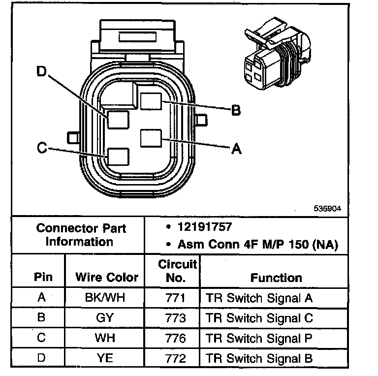 Transmission Range Switch Connector, Wiring Harness Side
