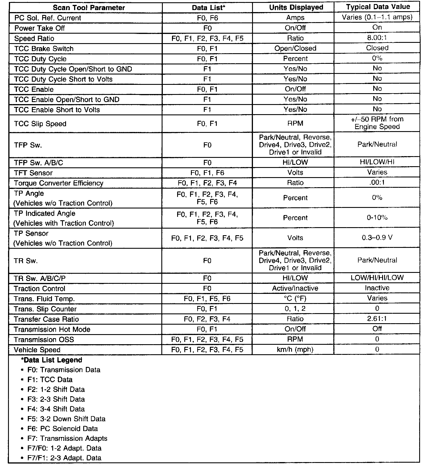 Transmission Scan Tool Data ListUse the scan tool data list under the following conditions: