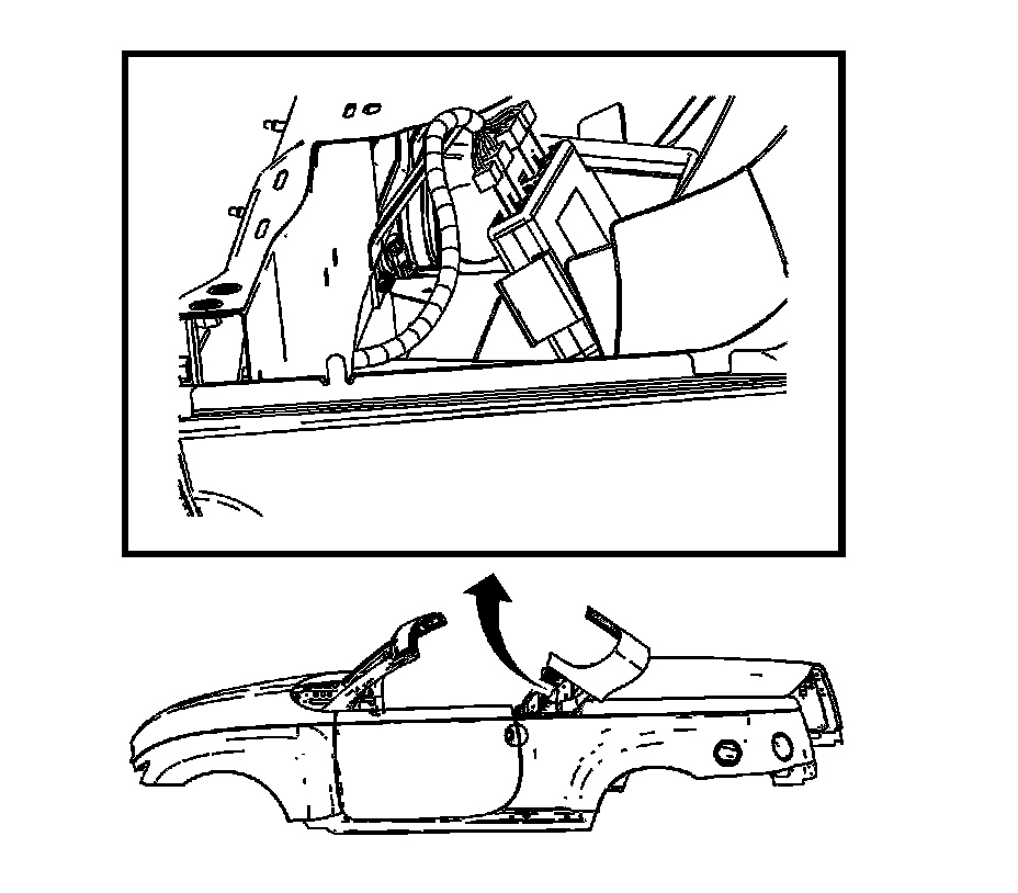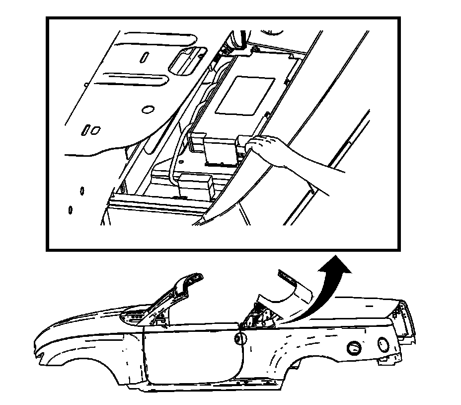 3. Push down firmly on the control module to seat the folding top control module clip into the body rear compartment.