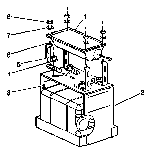 - To mount, use 4 m 6 bolts (6), nuts (8), and washers (7) in order to properly secure the IP module (1) to the deployment fixture.