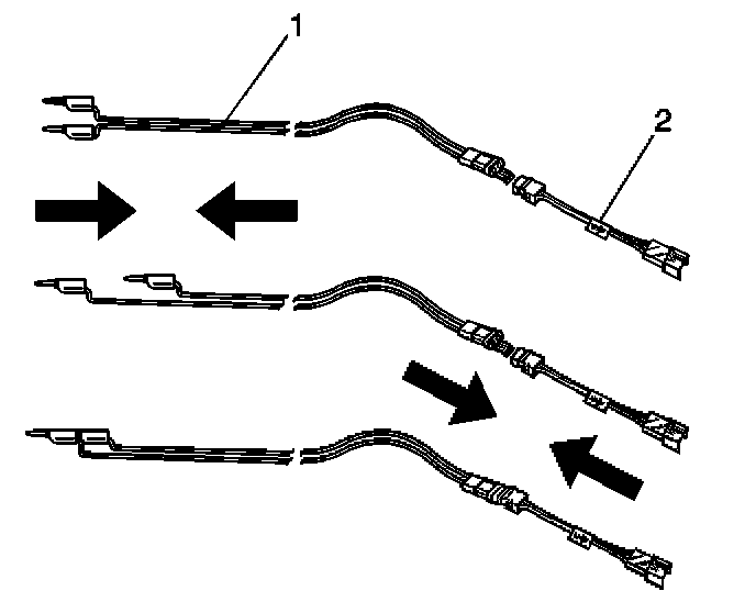 12. Inspect the J 38826 SIR deployment harness (1) and the appropriate pigtail adapter (2) for damage. Replace as needed.