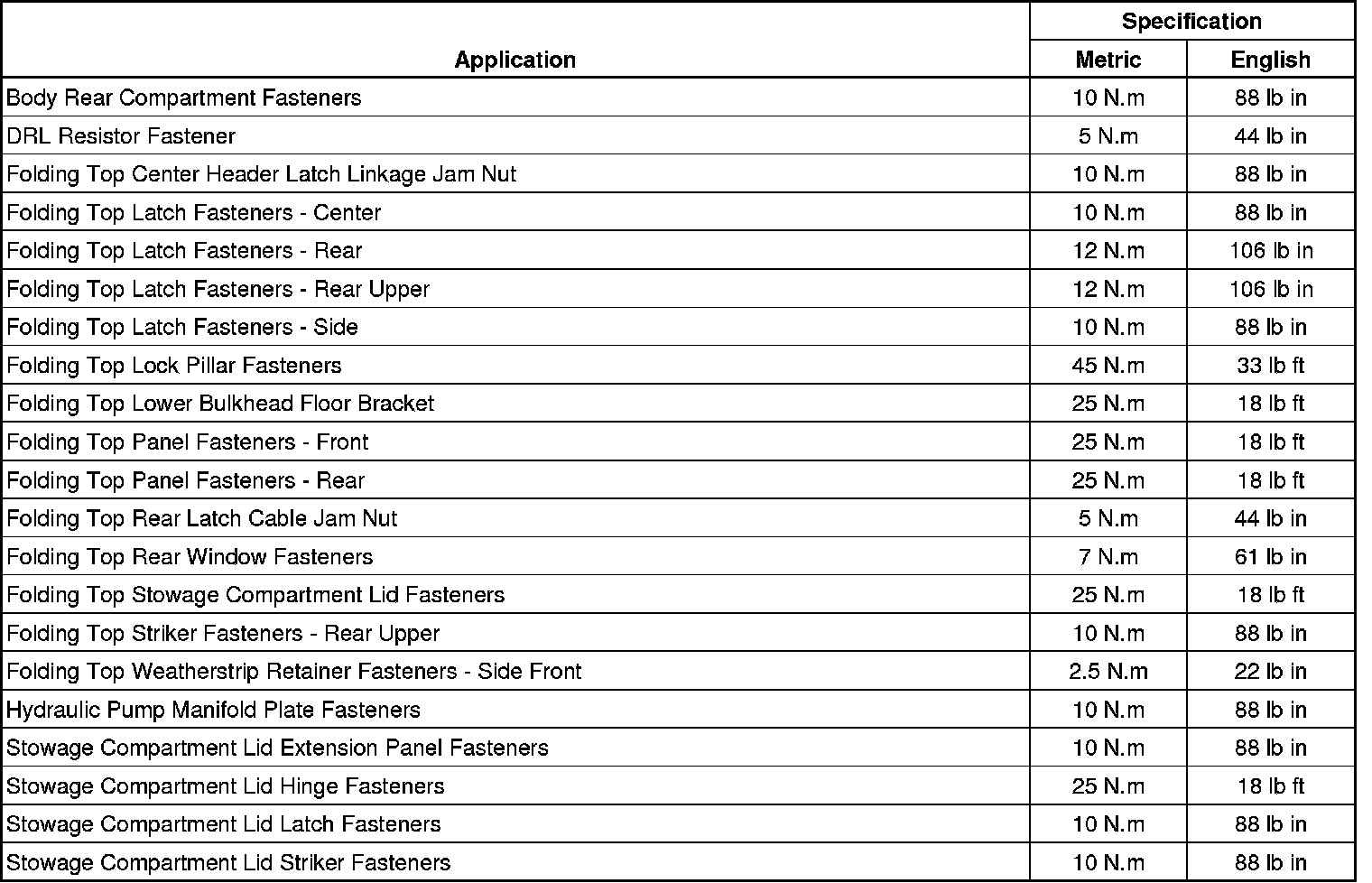 Fastener Tightening Specifications