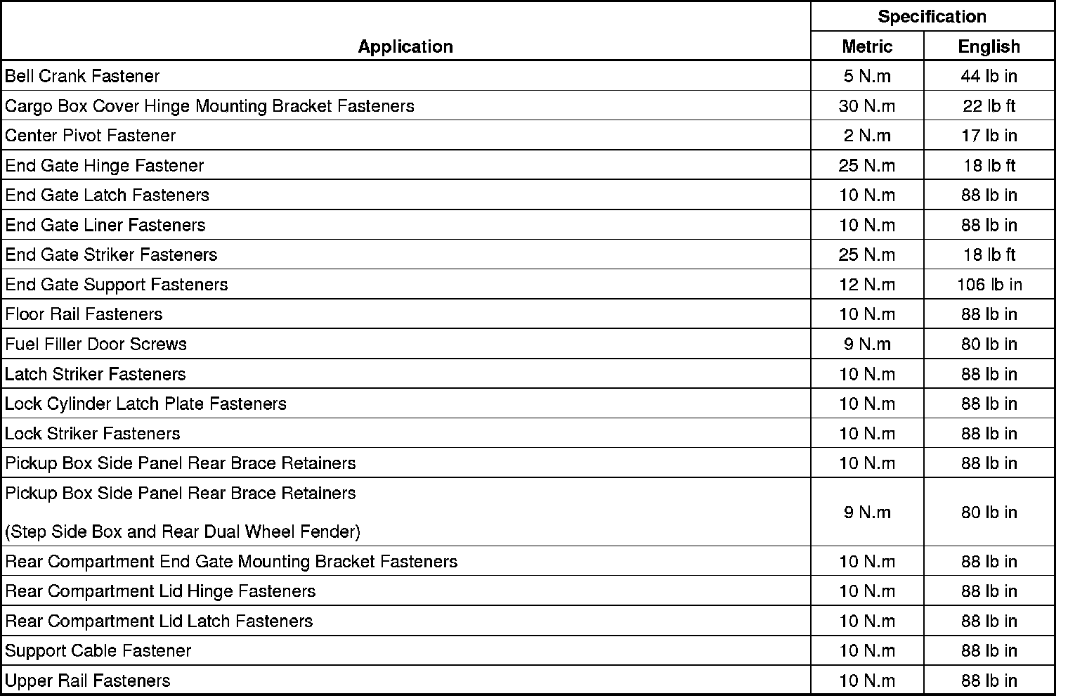 Fastener Tightening Specifications