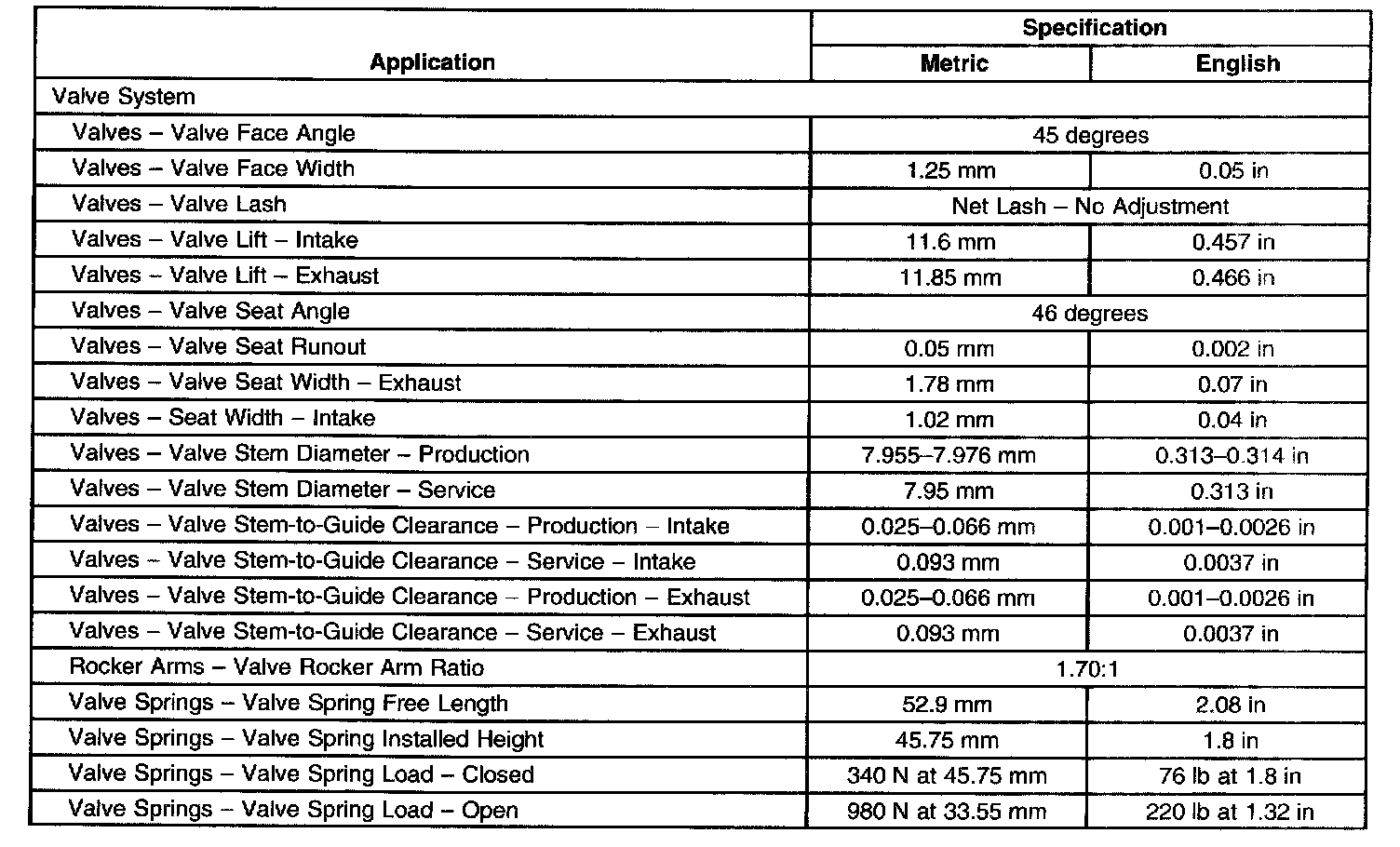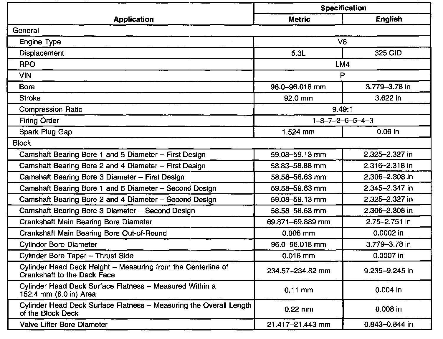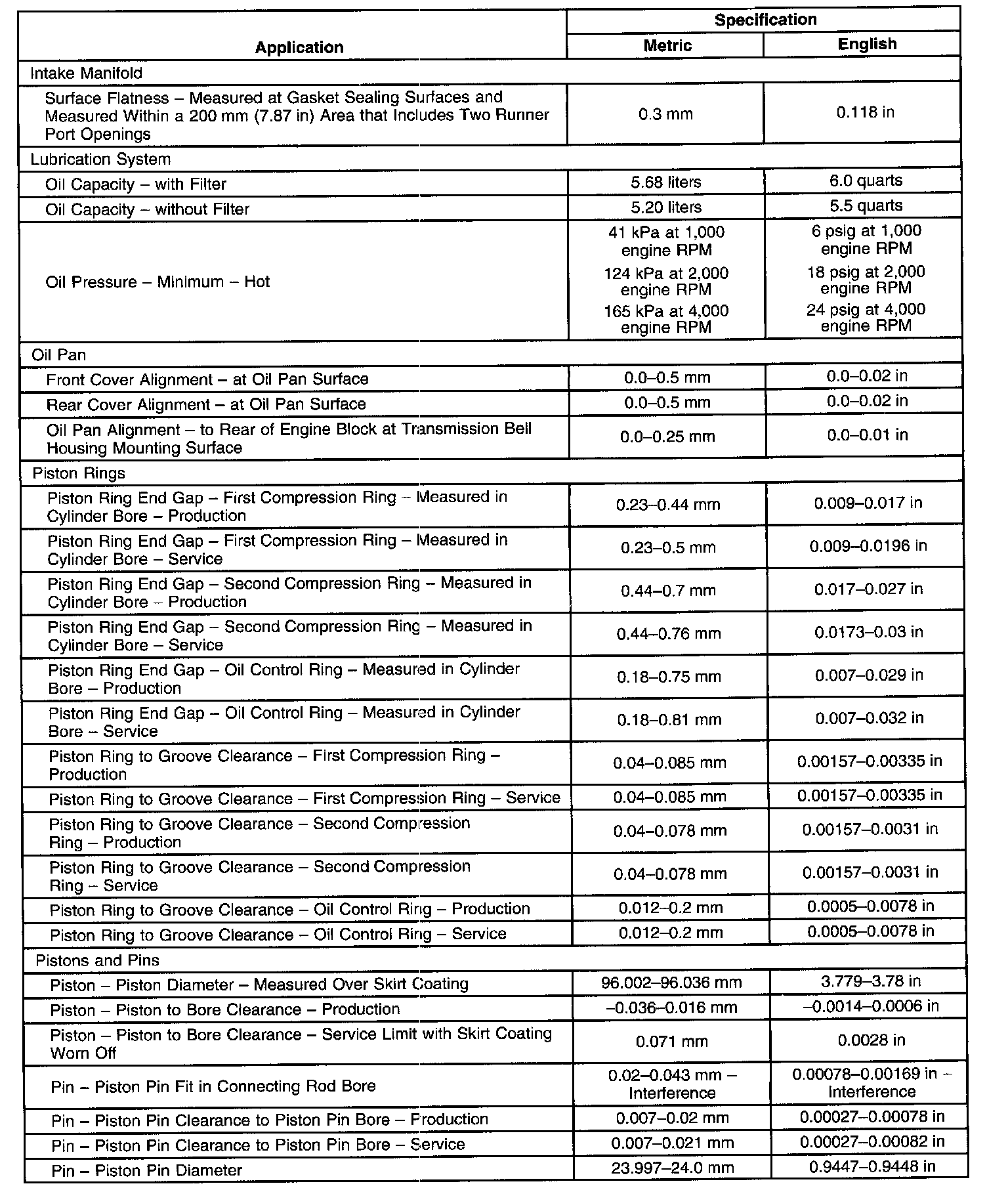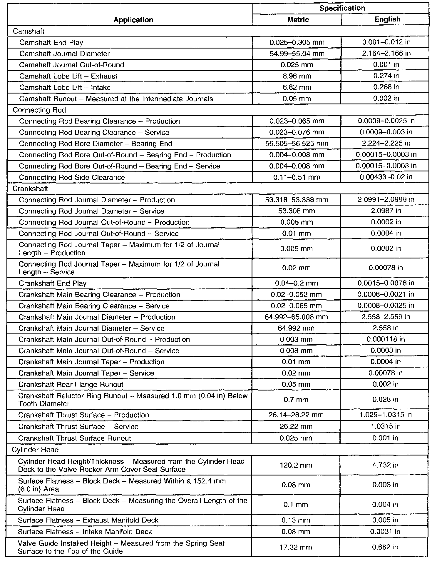 Engine Mechanical Specifications