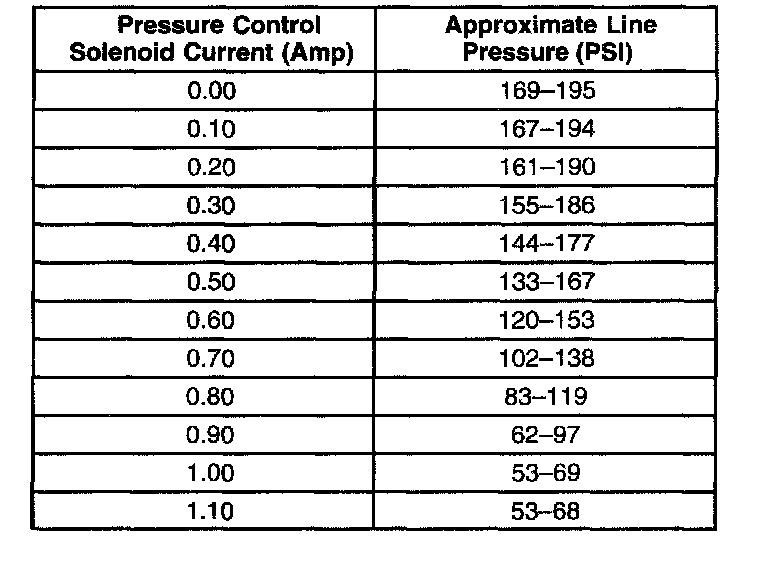 Line Pressure Chart