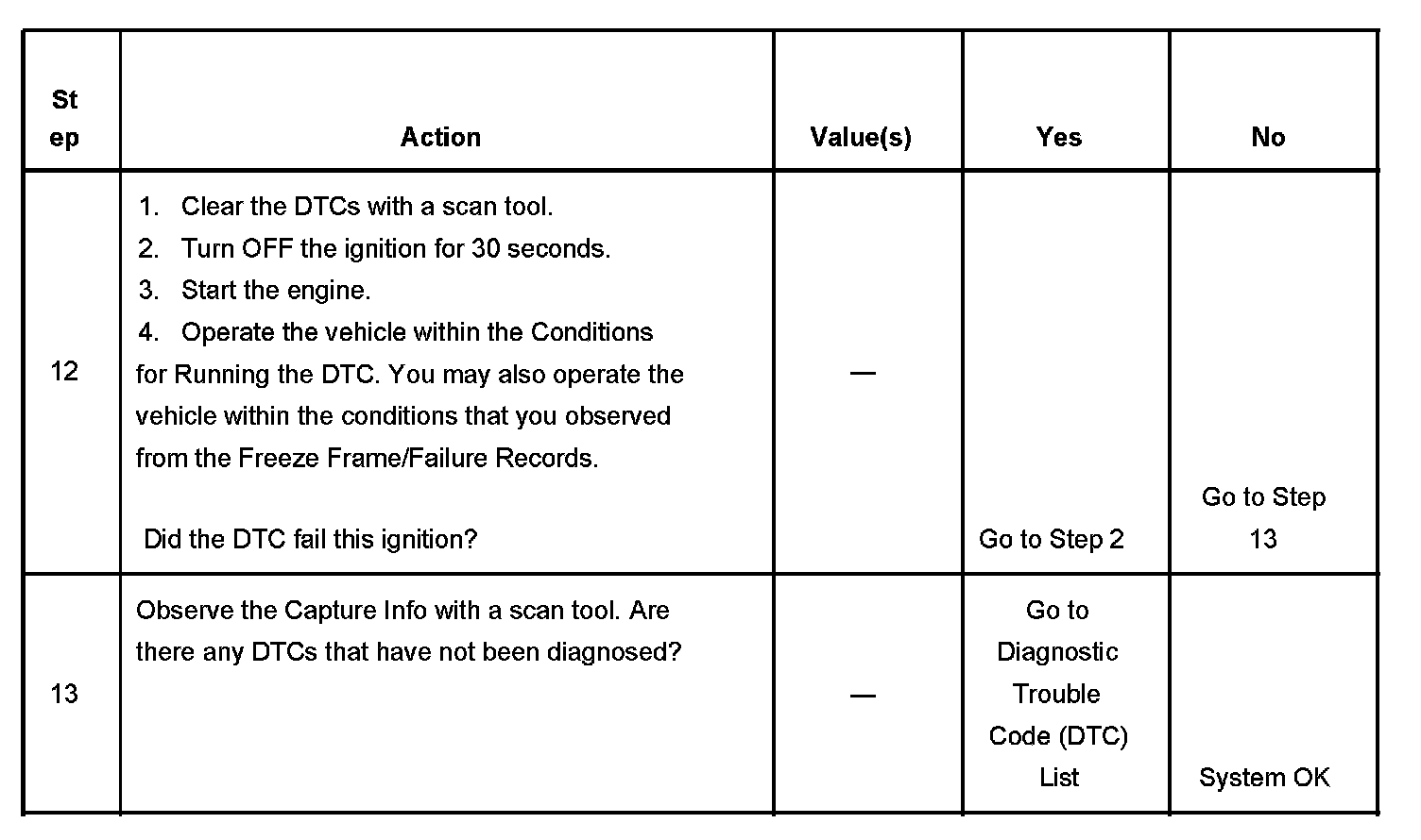 - A current DTC, Last Test Failed, clears when the diagnostic runs and passes.