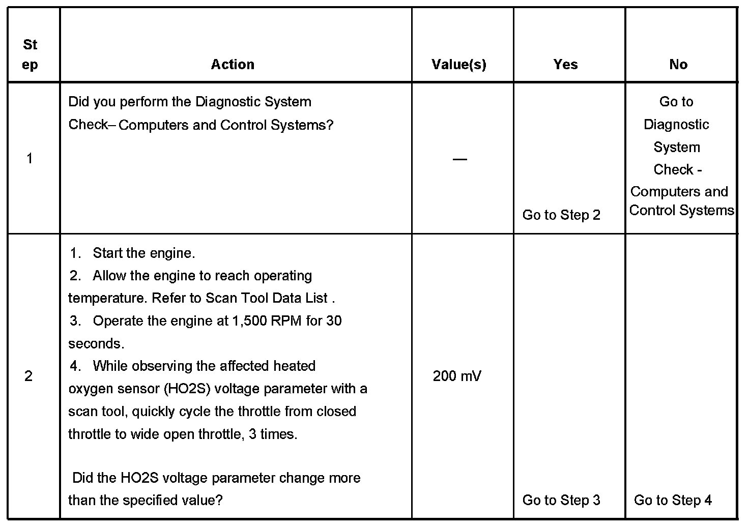- The PCM detects that the affected HO2S voltage parameter is between 410-490 mV for 150 seconds.