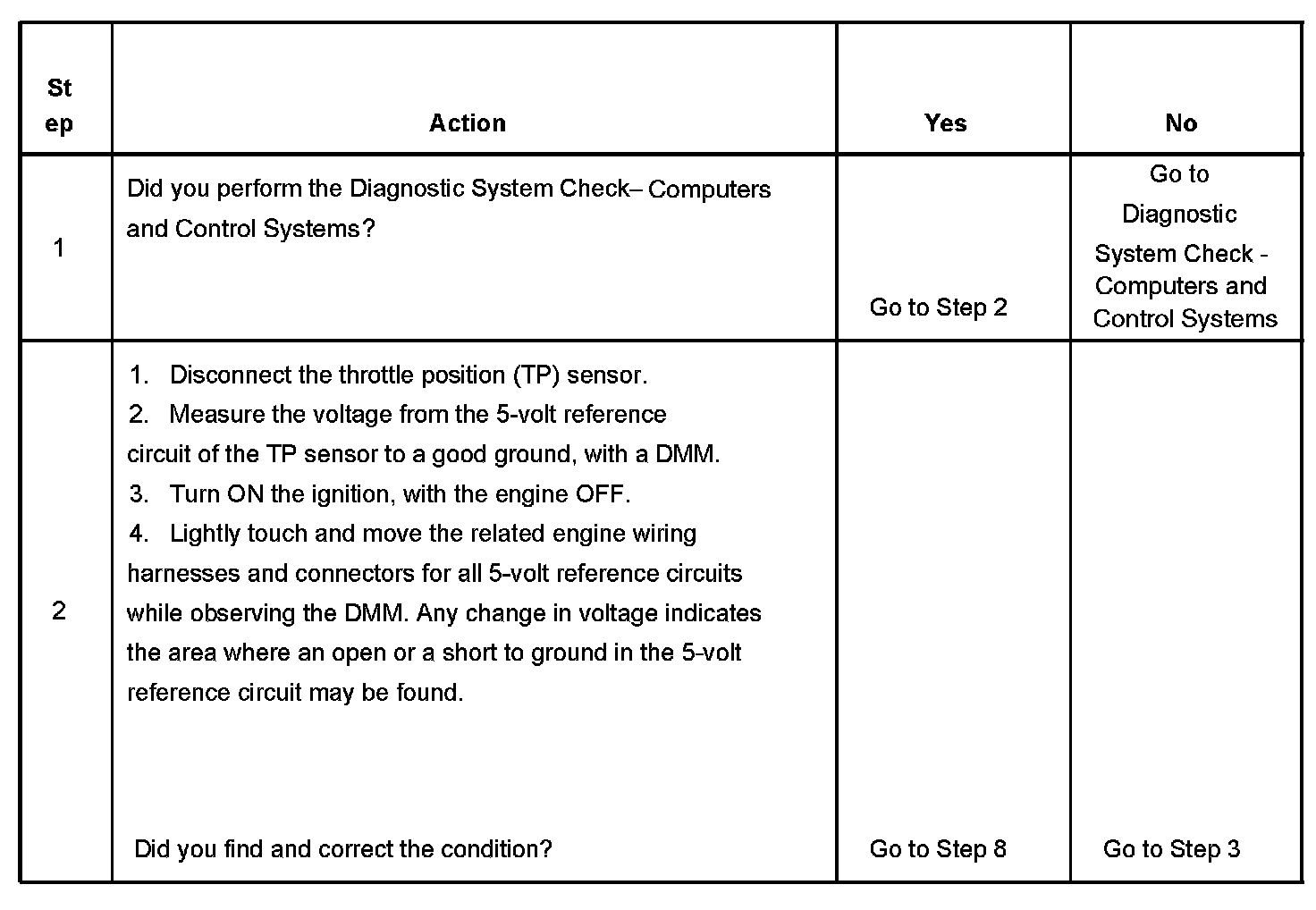 The number below refers to the step number on the diagnostic table.
