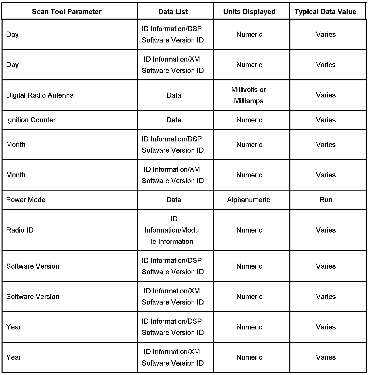 Scan Tool Data List