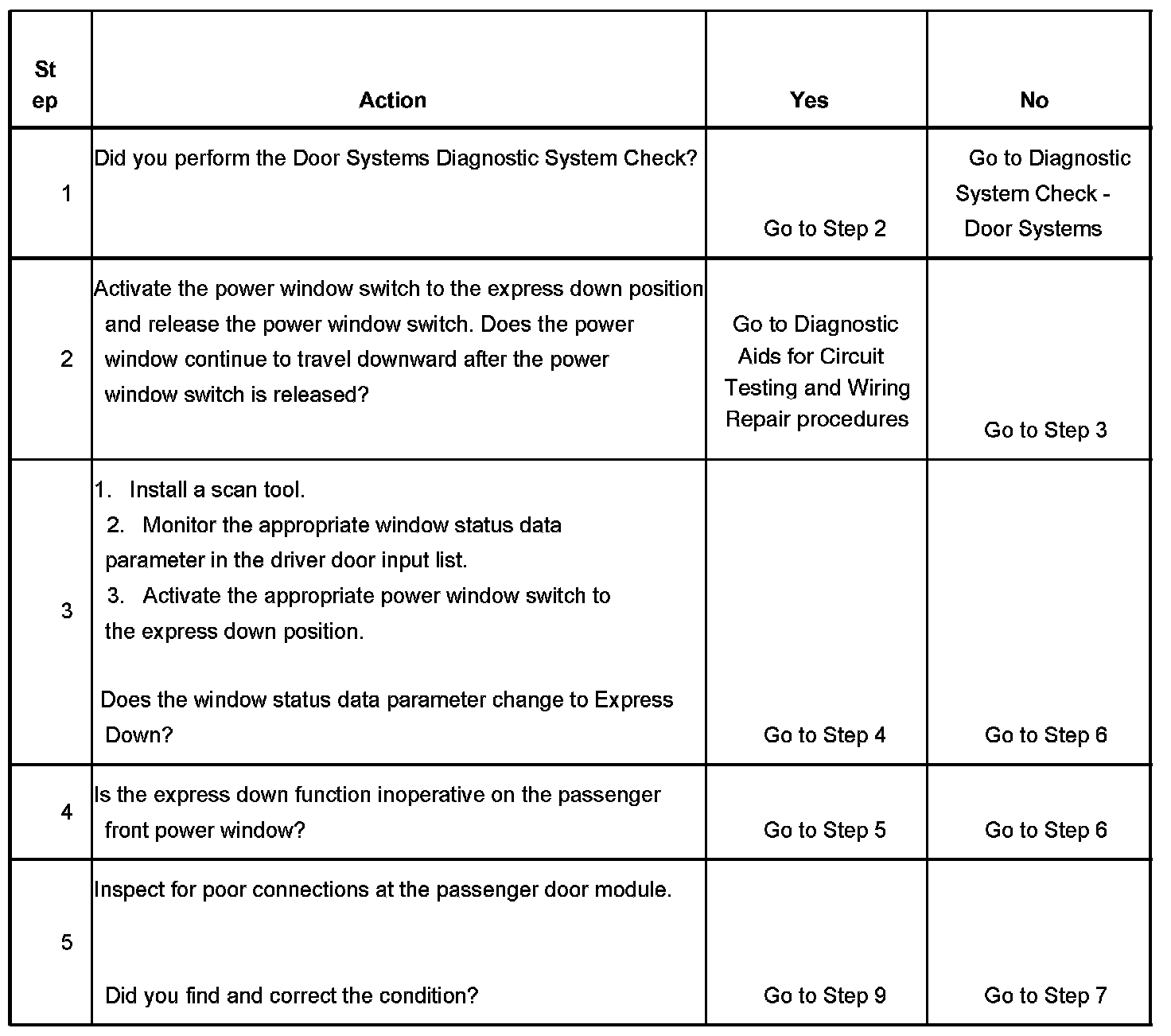 Power Windows - Inoperative - Express Down Function