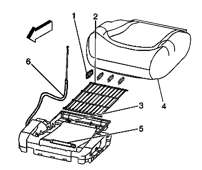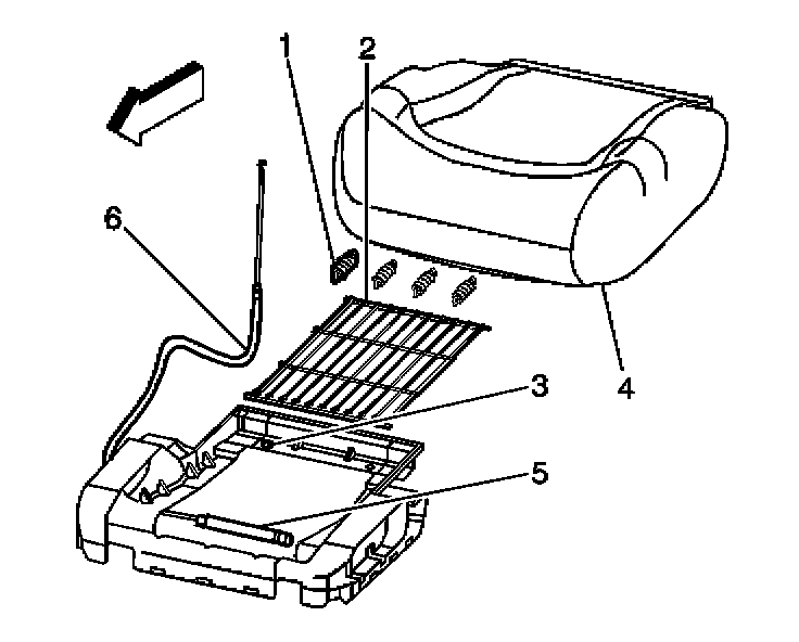 7. Connect the lumbar cable (6) underneath the seat cushion (disconnect the wire harness if equipped with power lumbar).