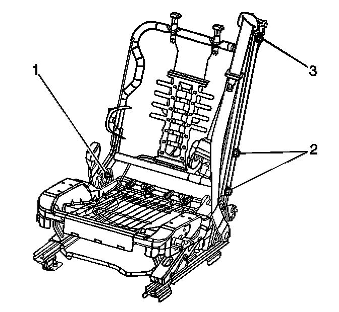 9. Remove the recliner arm attachment bolts (2).