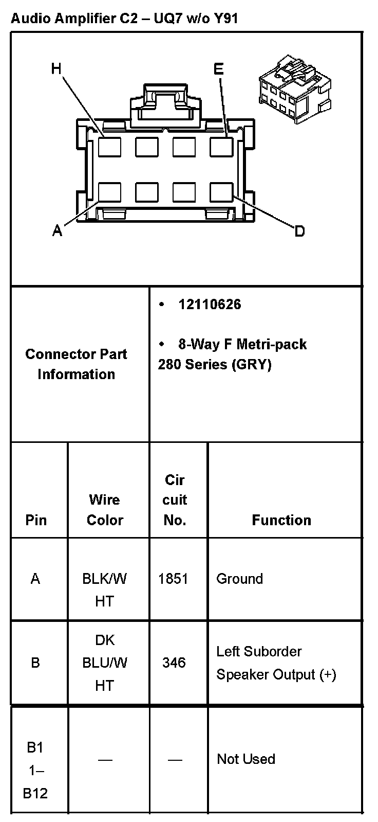Audio Amplifier C2 - With RPO Code UQ7 Without RPO Code Y91